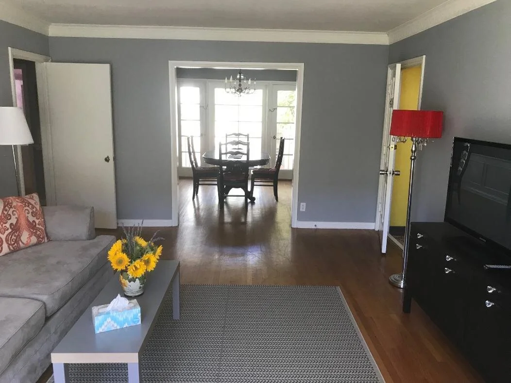 605 midvale is a spacious 2 bed 2 bath apartment with wonderful natural light, Living room, dining room, kitchen and patio. IT has a newly installed AC/Heat Mini SPlit Unit. It comes with 1 covered parking spot. It is approximately 1.200 square feet.